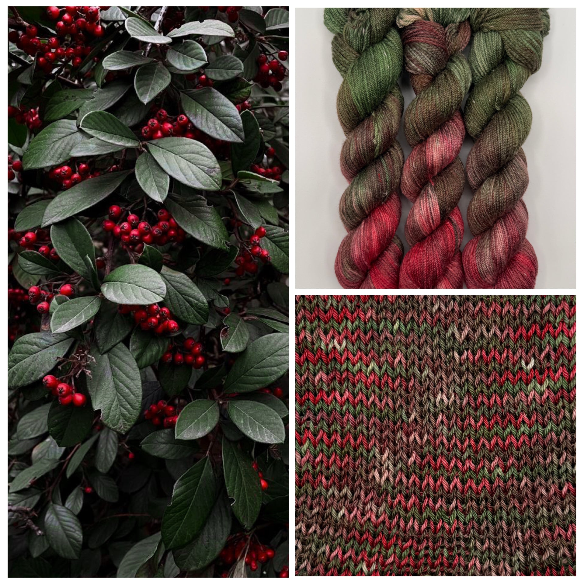 Use this colorway for pieces meant to hold a little nostalgia. Shawls that feel like keepsakes from a walk you wish you could take again, sweaters with a mossy warmth, or accessories that carry a thread of forest magic. Wherever the yarn goes, it brings the memory of those wildberries resting where they fell, waiting for the next season’s story.