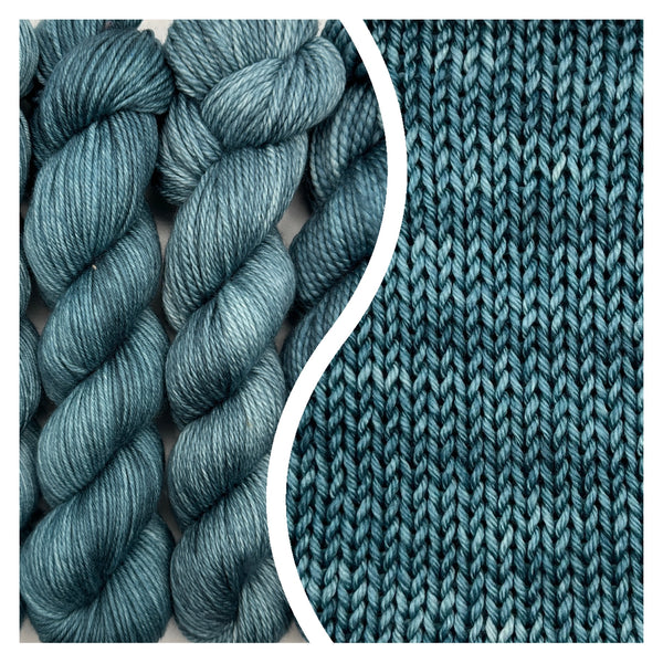 A rich blend of deep marine blue, stormy teal, and hints of misty aqua, shifting like the light playing on open water. Each skein embodies the fluid beauty of the sea.